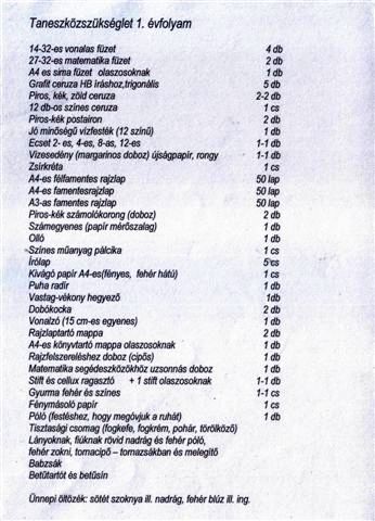 Gondolom, a szli rtekezleten kiosztott taneszkzlista segtsget ad. Ha valami krdsk lenne, nyugodtan rjanak.