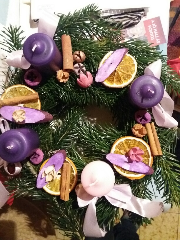 Az adventi koszorú is saját kezűleg készült.